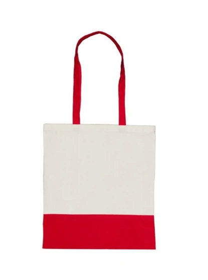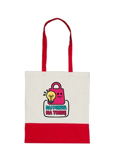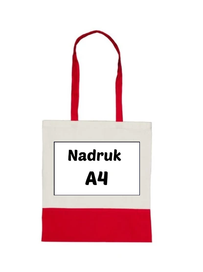 Kremowa torba na zakupy do nadruku z czerwonymi uszami i wykończeniem w dolnej części własny wzór