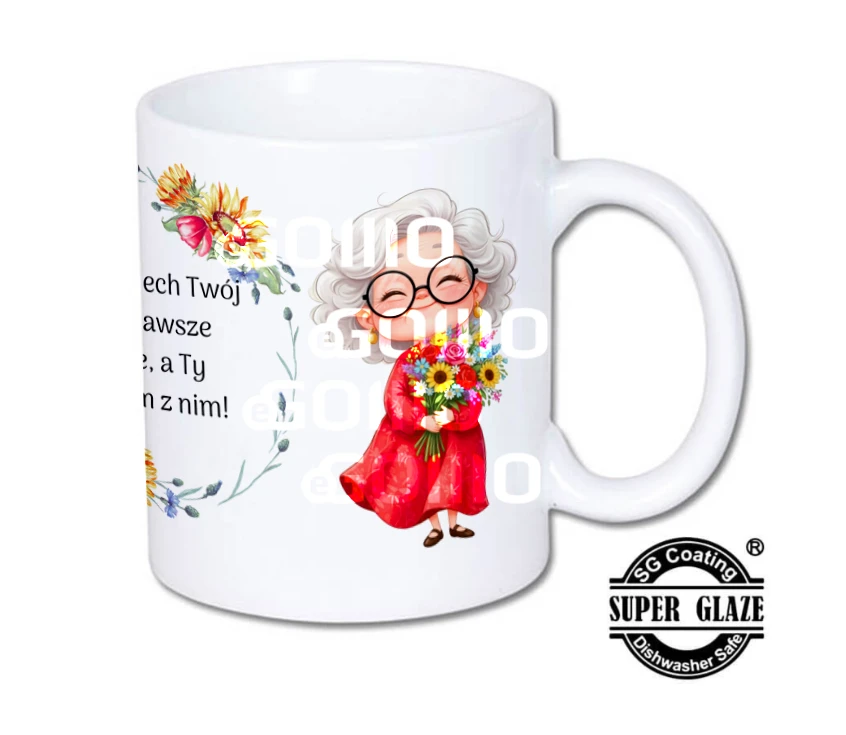 Kubek biały Super Glaze Premium Babcia ogród 2