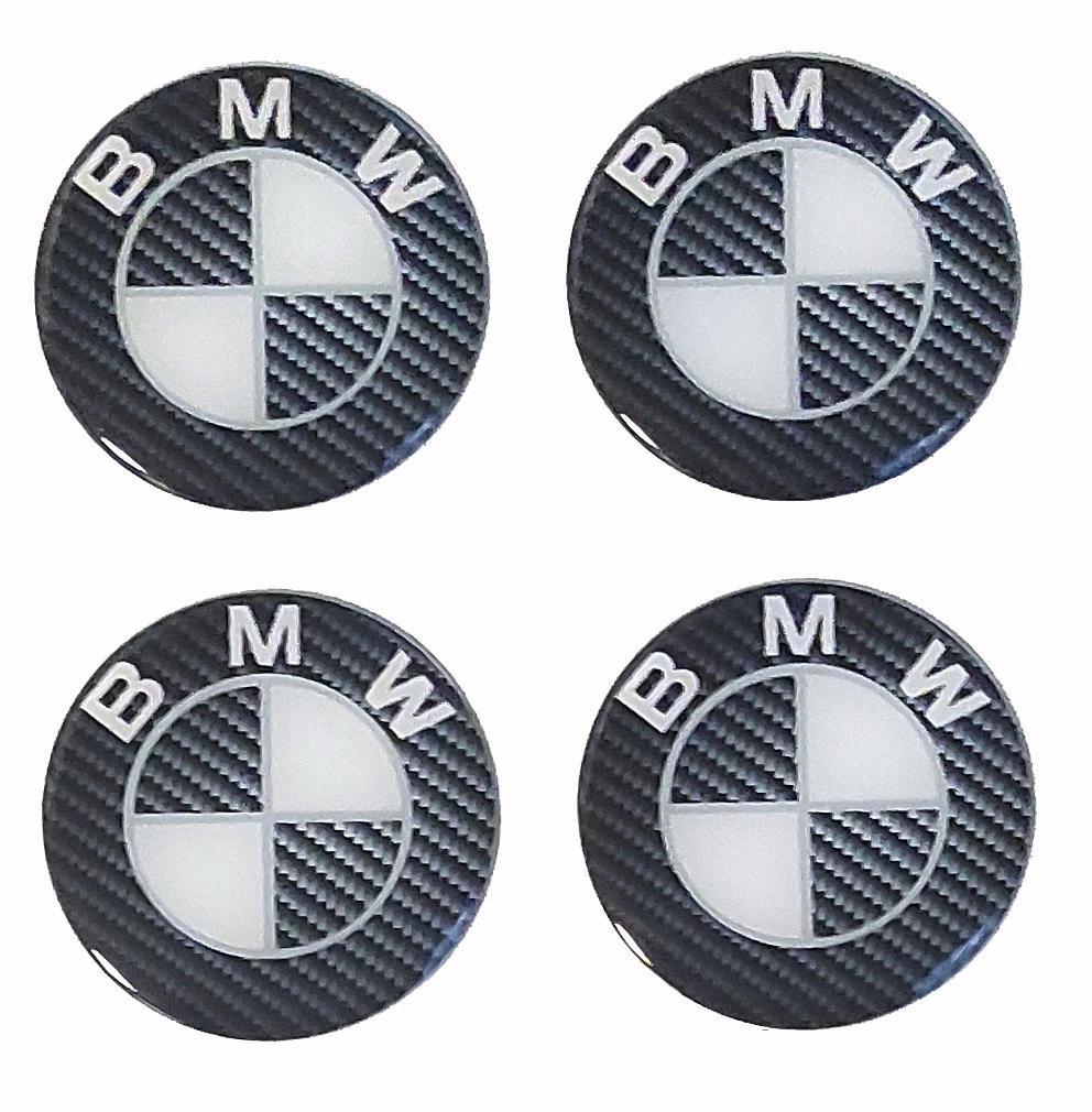 Naklejki na dekielki felgi kołpaki BMW efekt karbon 56 mm