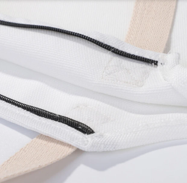 Kremowa torba na zakupy do nadruku z czarnymi uszami i wykończeniem w dolnej części własny wzór