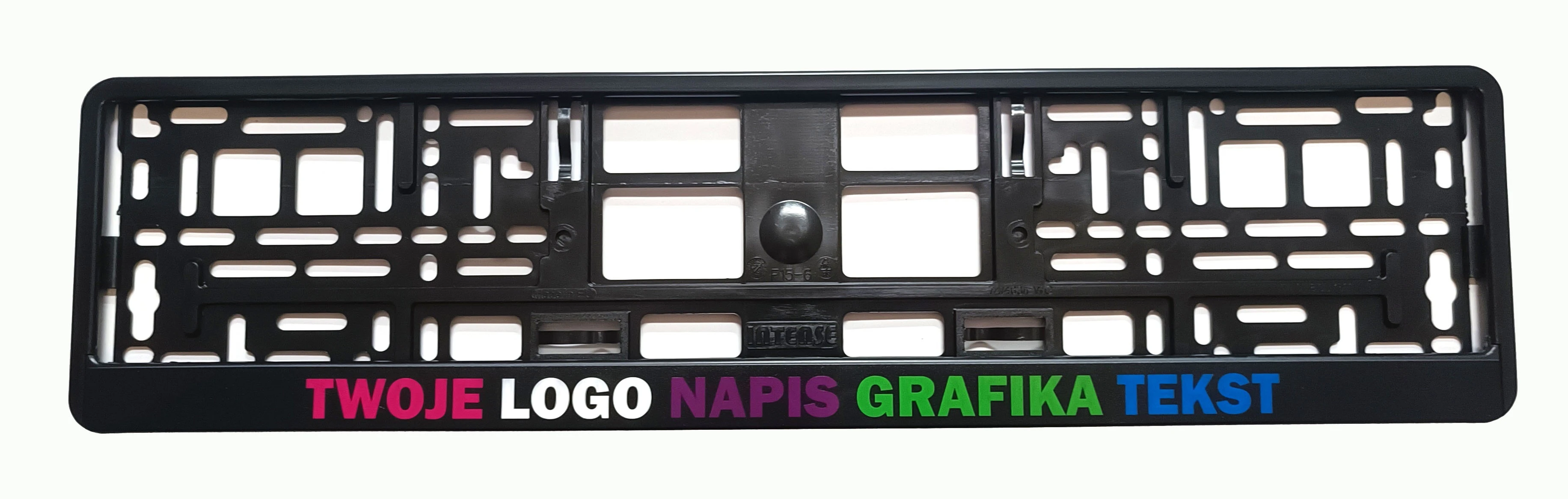 Ramka do tablicy rejestracyjnej z nadrukiem.