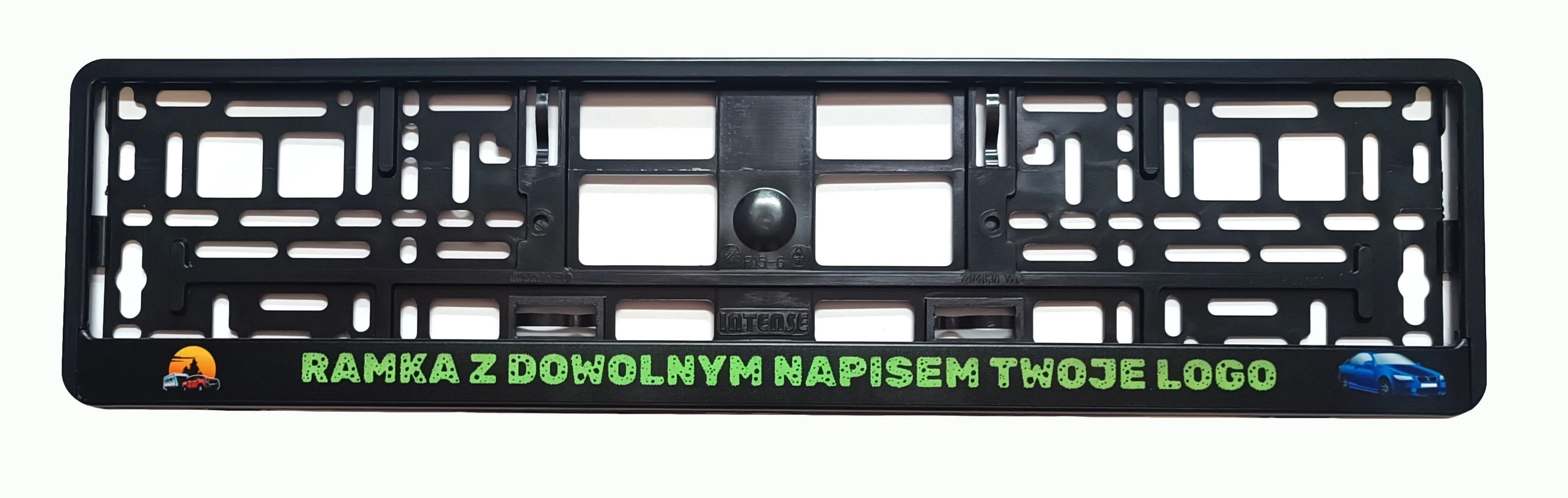 Ramka do tablicy rejestracyjnej z nadrukiem.